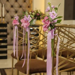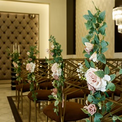 Enhance your elegant ceremony with luxurious décor package. Our Radiant Décor Package will give you 2 Radiant Altar Sprays with complementing pew markers and an aisle sprinkled with rose petals. This romantic look can be customized with your wedding planner by picking your wedding colors. Minimum two (2) weeks notice required. Minimum two (2) weeks notice required.
