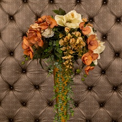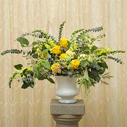 The new classic look. Our Lovely Altar Spray gives you a traditional ambiance with blossoming roses, while paired with modern greenery for that popular “freshly-picked” look. Available in a variety of color schemes. Minimum two (2) weeks notice required.
