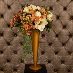 Wedding dreams do come true, and this Dazzling Altar Spray is a “must-have” statement piece for your Las Vegas wedding. An abundance of rich and lavish flowers from Snapdragons to Hydrangeas to Eucalyptus, and of course the traditional rose, are positioned perfectly to create an eye-catching piece to accompany your “I dos.” Simply elegant, this altar spray is available in a wide selection of color schemes, and your wedding planner can assist you with designing this magnificent floral masterpiece. Minimum two (2) weeks notice required.