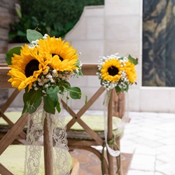 Elevate the ambiance of your ceremony with the captivating allure of our Sunflower Pew Markers, displaying Sunflowers, Baby’s Breath, and greenery. Each pew marker is meticulously handcrafted by our skilled florists.