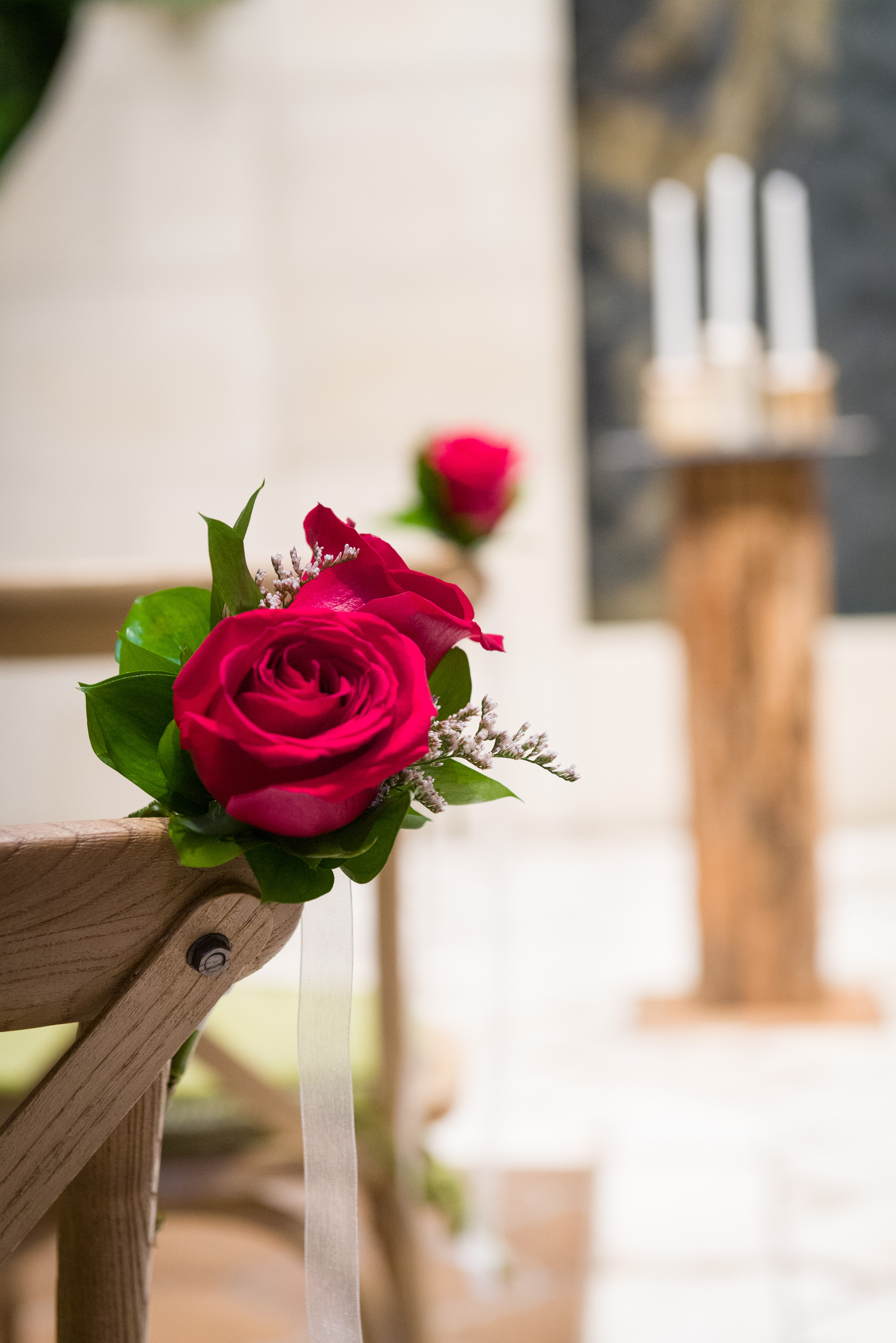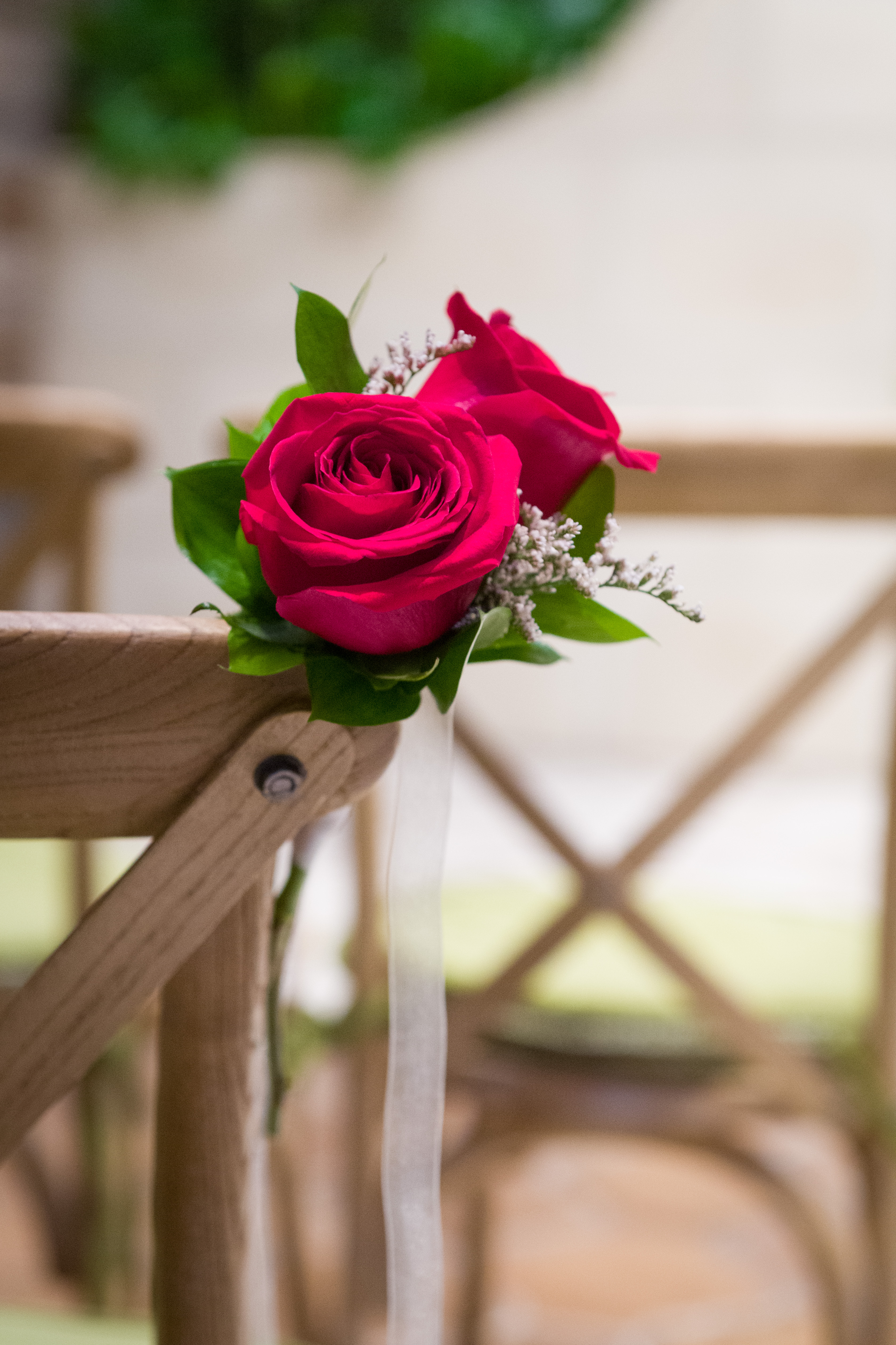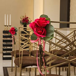Add some floral décor to your wedding aisle with rose pew markers. This floral upgrade includes two roses for each pew and are available in a variety of colors. (Price is for each pew marker.) Not available in the Magnolia Chapel.