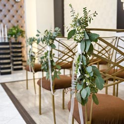 Decorate your chapel aisle with these fresh-from-the-garden pew markers. By adding wispy vines, eucalyptus leaves, and petite flower buds; you will turn your Glass Gardens wedding into a romantic and captivating ceremony. Minimum two (2) weeks notice required.