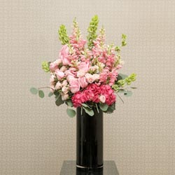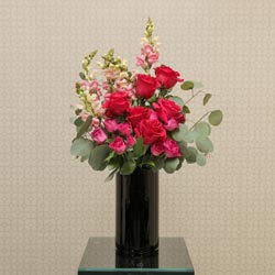 Your ceremony altar will be breathtaking with our Brilliant Altar Spray. Classic roses are paired with Snapdragon and divine Eucalyptus greenery and arranged in an ultra-modern clear vase. Customize your altar spray by selecting from a variety of color hues. Minimum two (2) weeks notice required.