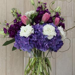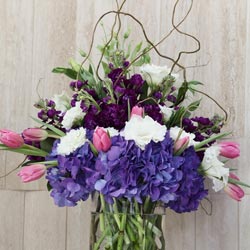 Plan your perfect ceremony with awe-inspiring floral design. The garden altar spray features an array of flowers including stock blooms, hydrangeas, tulips and floral fillers in a large arrangement. A collection of color schemes available. (Price is for each altar spray). Minimum two (2) weeks notice required.