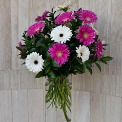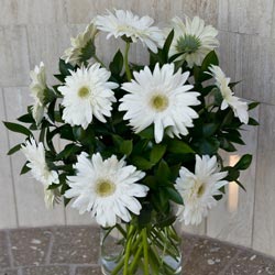 Our gerbera daisy alter spray will add a touch of sweetness to your ceremony. This alluring altar spray includes gerbera daisies and floral filler in a medium arrangement. Daisies are available in a variety of colors. (Price is for each altar spray). Minimum two (2) weeks notice required.