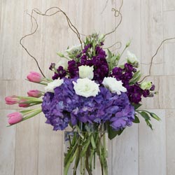 Your tablescape will blossom when you display the large Alluring Blooms centerpiece. The soft layers of lisianthus with the stock flowers, roses, freesia, and ruscus greenery in a bulb vase create the right amount of flowers for your reception tables. Play with color combinations, as you and your wedding planner will find a color theme to fit your wedding vision. The Alluring Blooms Floral Collection offers everything from bouquets, boutonnieres, corsages and ceremony décor for your special day. Minimum two (2) weeks notice required.