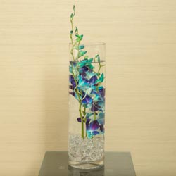 Captivate your wedding guests with this eye-catching centerpiece. The Orchid Bliss floral arrangement will display delicate orchids in a contemporary glass vase with crystal stones. Your planner will help you pick the perfect shade of orchid, and can add wire wrap, rhinestone wrap, and LED lights to this exquisite centerpiece. Minimum two (2) weeks notice required.