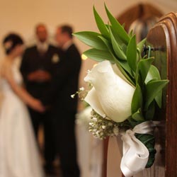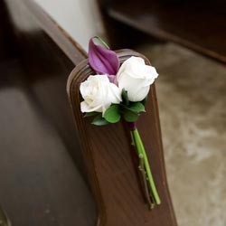A touch of sophistication! Enhance your wedding aisle with two roses paired with one mini calla lily at the end of each pew. Roses are available in a variety of colors. Must order at least six pew markers. (Price is for each pew marker.) Not available in the Magnolia Chapel. Minimum two (2) weeks notice required.