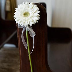 Dainty and sweet, add a single gerbera daisy pew marker at the end of each pew for a fun ceremony scheme. Daisies are available in a variety of colors. Must order at least six pew markers. (Price is for each pew marker.) Not available in the Magnolia Chapel. Minimum two (2) weeks notice required.