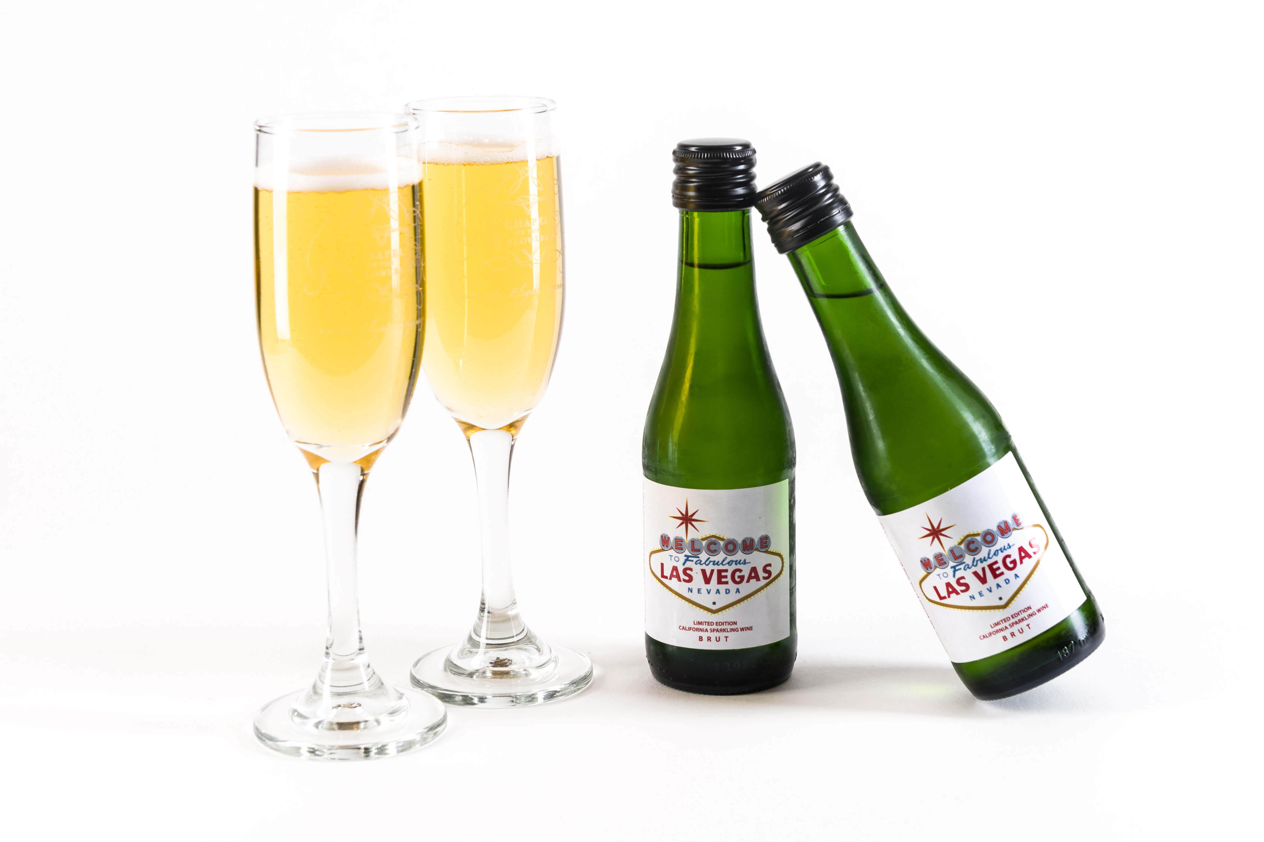 Commemorate your love with two small, 187 ML bottles of California Sparkling Wine, each reading "Welcome to Fabulous Las Vegas," along with a pair of Chapel of the Flowers engraved toasting flutes.