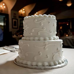 Make your reception scrumptious! This two-tier wedding cake is decorated with elegant icing dots or whimsical icing swirls and serves 25-35. Splendid Cakes will have choice of cake shape, flavor, filling and upgraded bling ribbon. The cake will be delivered to the Chapel to take with you after your ceremony. (Wedding planner can arrange for delivery to hotel or reception venue, additional fee will apply)