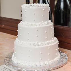 A sweet surprise for your wedding guests. This gorgeous 3-tier wedding cake is decorated with elegant icing dots or whimsical icing swirls and serves 70-75. Splendid Cakes will have choice of cake shape, flavor, filling and upgraded bling ribbon. The cake will be delivered to the Chapel to take with you after your ceremony. (Wedding planner can arrange for delivery to hotel or reception venue, additional fee will apply)