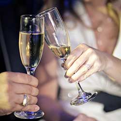 Let them eat cake at your reception! The two-tiered divine wedding cake serves 18-25 people and is decorated with exquisite icing dots or fancy icing swirls, beautiful ribbon and fresh roses. Divine Cakes will have choice of cake shape, flavor, filling, fresh roses, ribbon trim, and upgraded bling ribbon. The cake will be delivered to the Chapel to take with you after your ceremony. (Wedding planner can arrange for delivery to hotel or reception venue, additional fee will apply)