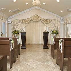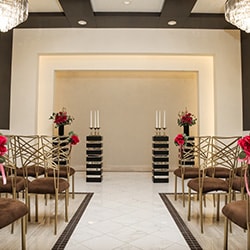 Create a romantic ambiance with rose bridal floral arrangements in our Magnolia Chapel. This floral package includes a rose petal walkway and altar sprays in your choice of color scheme. Additional fee will apply to have arrangements delivered to your reception location after your wedding ceremony. Minimum two (2) weeks notice required.