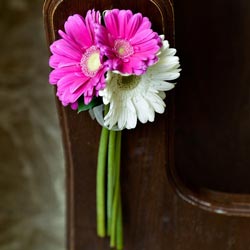 Dress up your wedding with a delightful gerbera daisy altar spray. This charming altar spray includes gerbera daisies and floral filler in a small wedding flower arrangement. Daisies are available in a variety of colors. (Price is for each altar spray). Minimum two (2) weeks notice required.
