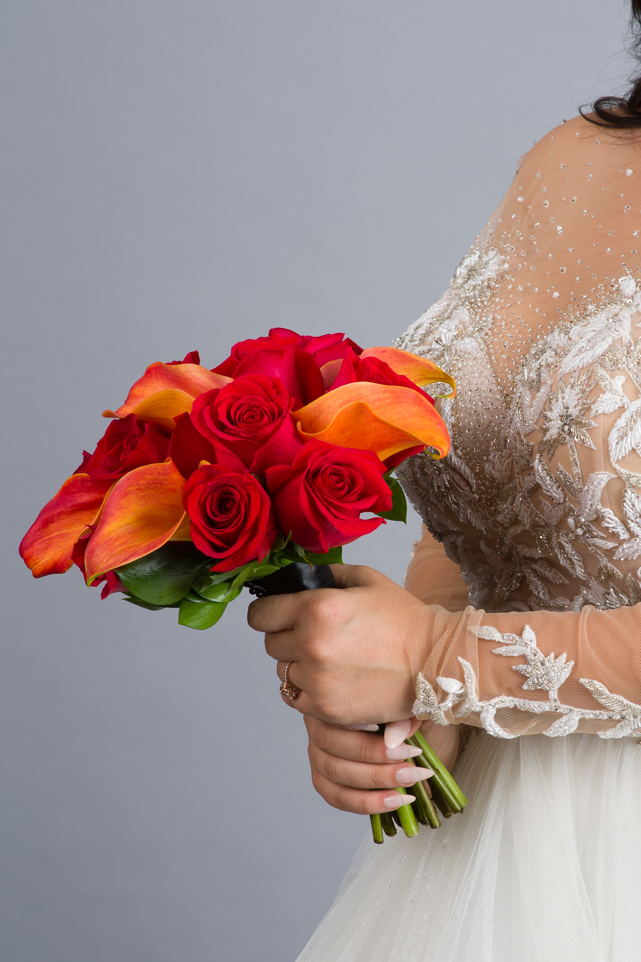Simple elegance at its best! This bouquet combines twelve roses with six miniature calla lilies hand-tied with your choice of colored ribbon. Roses are available in pink, white and red. Specialty colors, floral fillers and floral wraps available as an upgrade. Minimum two (2) week notice required.