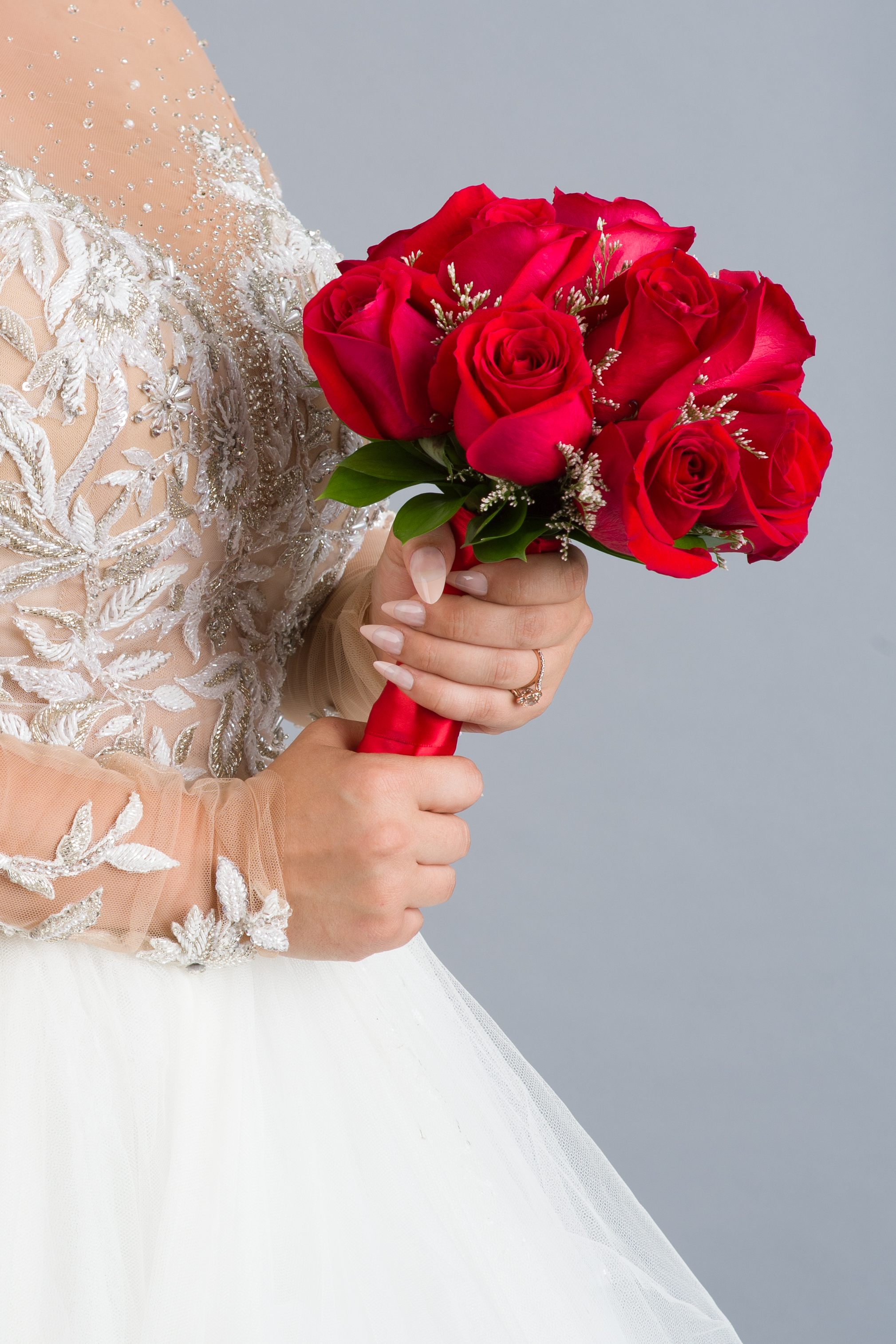 Roses are always in style! Our twelve rose bouquet is hand-tied and available in pink, white and red. Filler flowers and greenery will be coordinated with the color of your roses and ribbon. Specialty colors and floral wraps available as an upgrade.